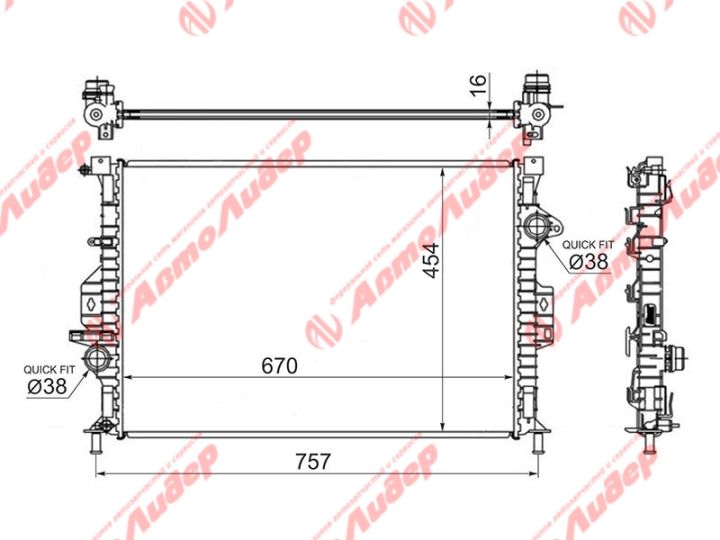 Радиатор охлаждения /AUTOLEADER для Ford Focus 2011- Kuga 2008- C-MAX Grand 2010- Mondeo 2007-2014 SMAX Galaxy 2006 V70 2007-2016 /без крышки; FD-KUGA-1216; (RB2842 ) FD0003 1582563 1762395