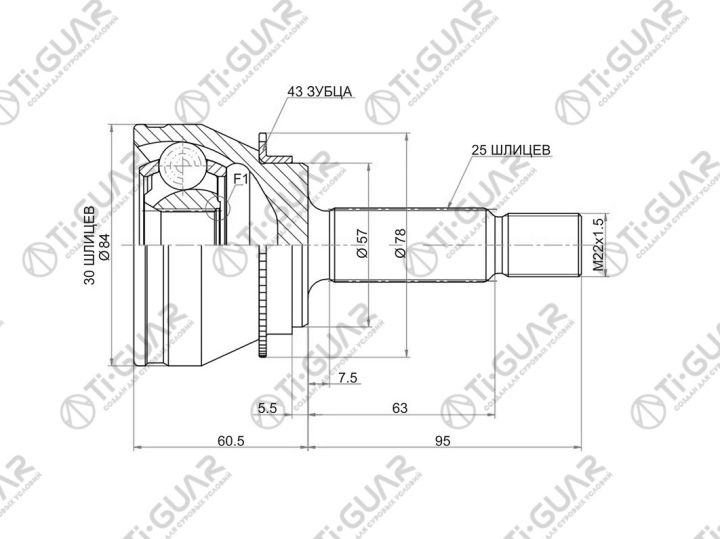 ШРУС наружный / правый /левый /TI-GUAR для Mitsubishi Lancer Cedia 2000- Wagon; 30*57*25; TG-7236Z43; (MI-036A43) MI036A43 MR553009 0410CS3A